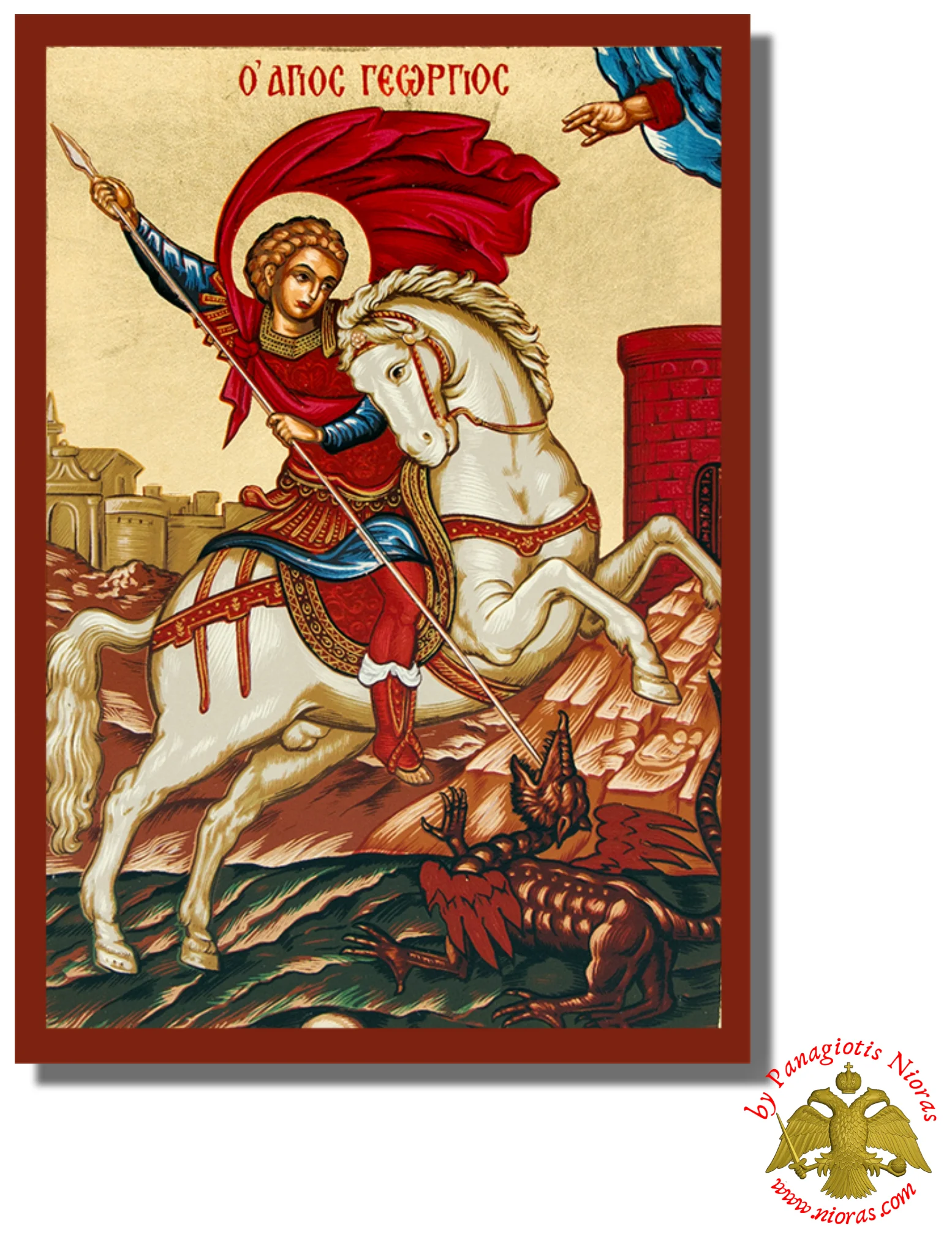Χειροποίητη Ξύλινη Εικόνα Ο Άγιος Γεώργιος Σε Καμβά.