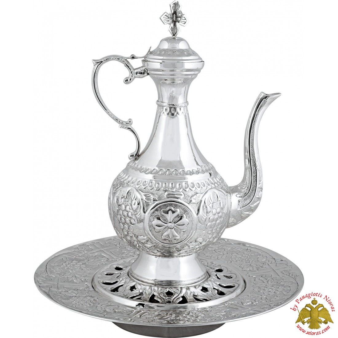 Η βάση της κανάτας είναι επάνω σε ένα διάτρητο σκαλιστό πιατάκι και όλα αυτά είναι μέσα σε μία σκαλιστή λεκάνη. Χρησιμοποιείται για το πλύσιμο των χεριών των αρχιερέων.