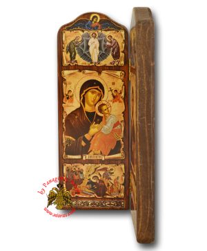 Wooden Diptych with Icon of Christ and Panagia.