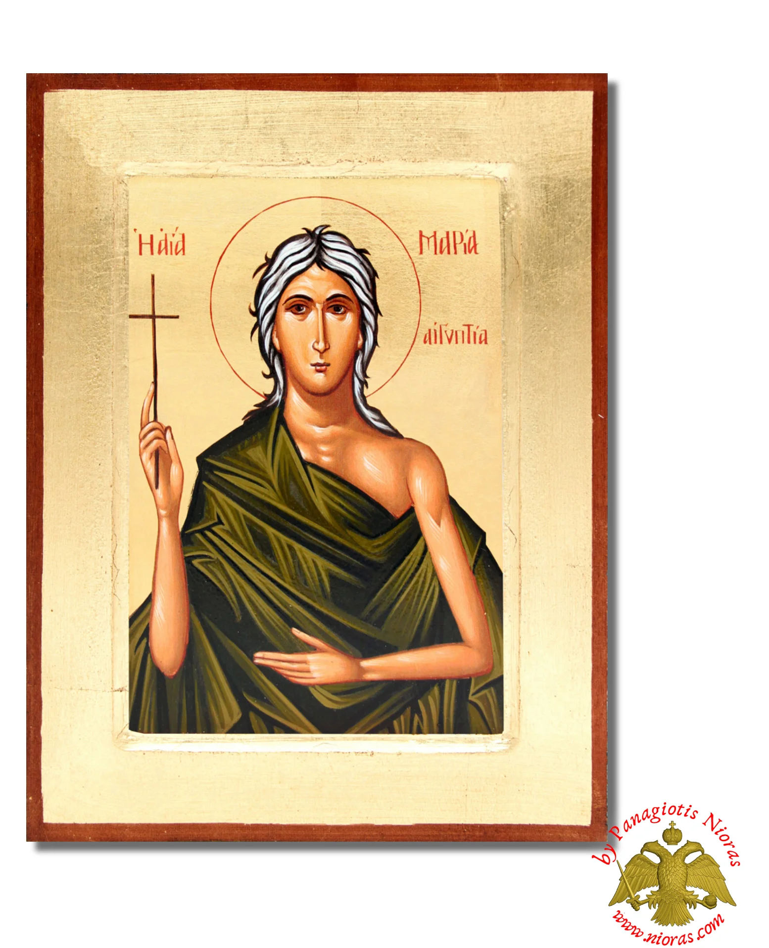 Χειροποίητη Ξύλινη Εικόνα Η Αγία Μαρία της Αιγύπτου Σε Καμβά.