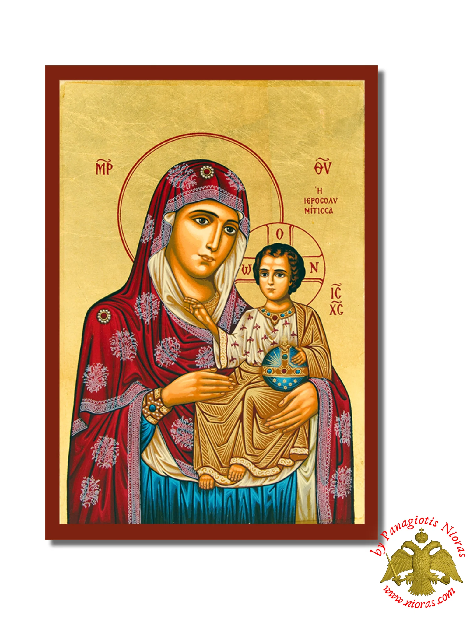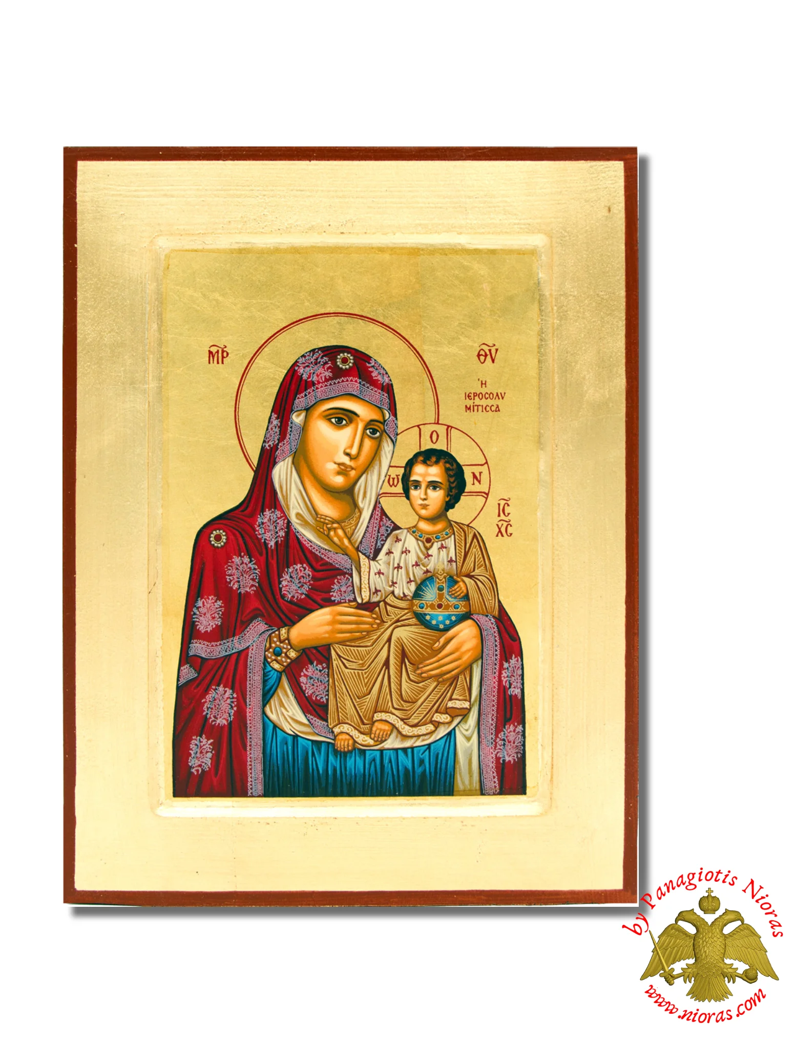 Χειροποίητη Ξύλινη Εικόνα Η Παναγιά Ιεροσολυμίτισσα Σε Καμβά.