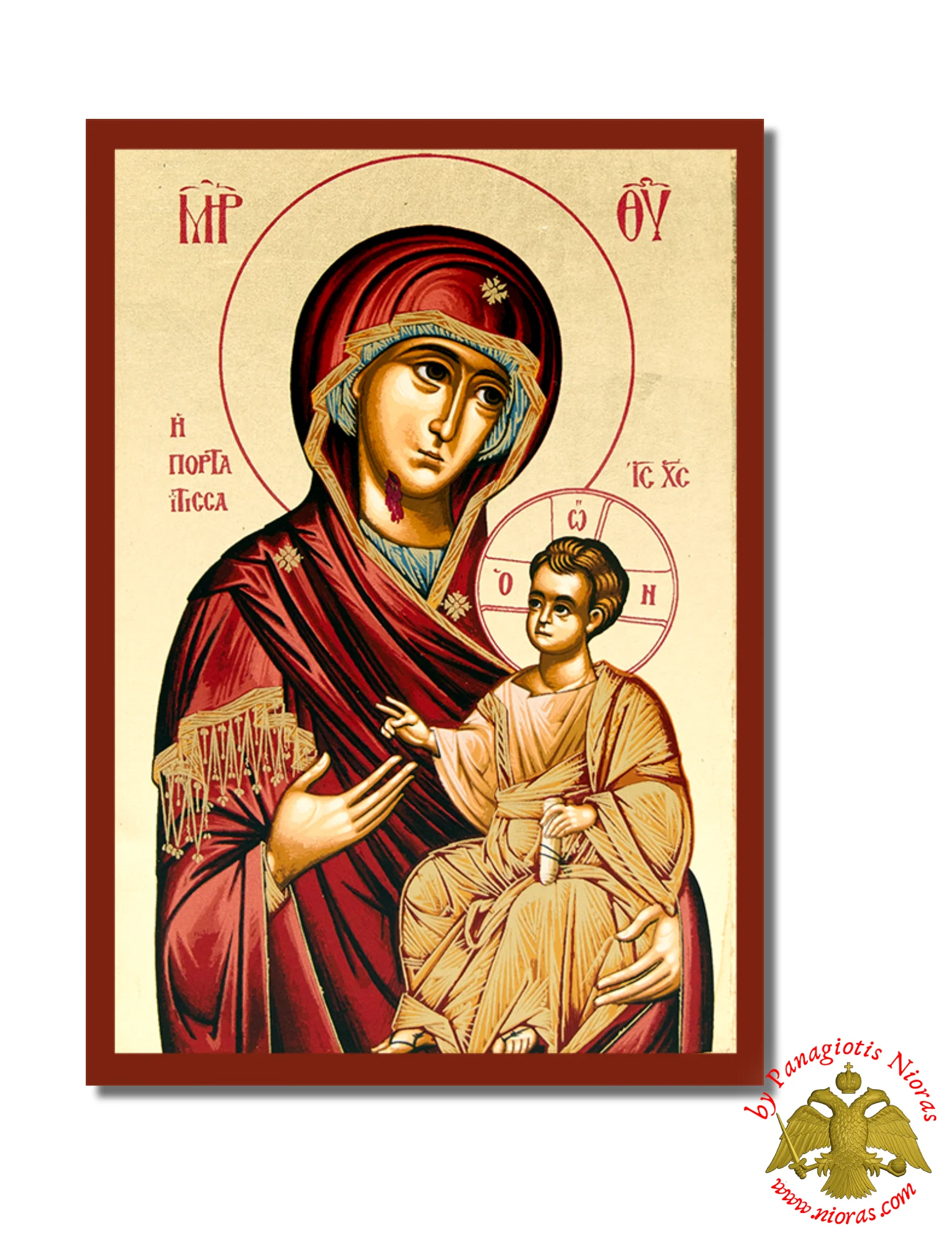 Χειροποίητη Ξύλινη Εικόνα Η Παναγιά Πορταίτισσα Σε Καμβά.