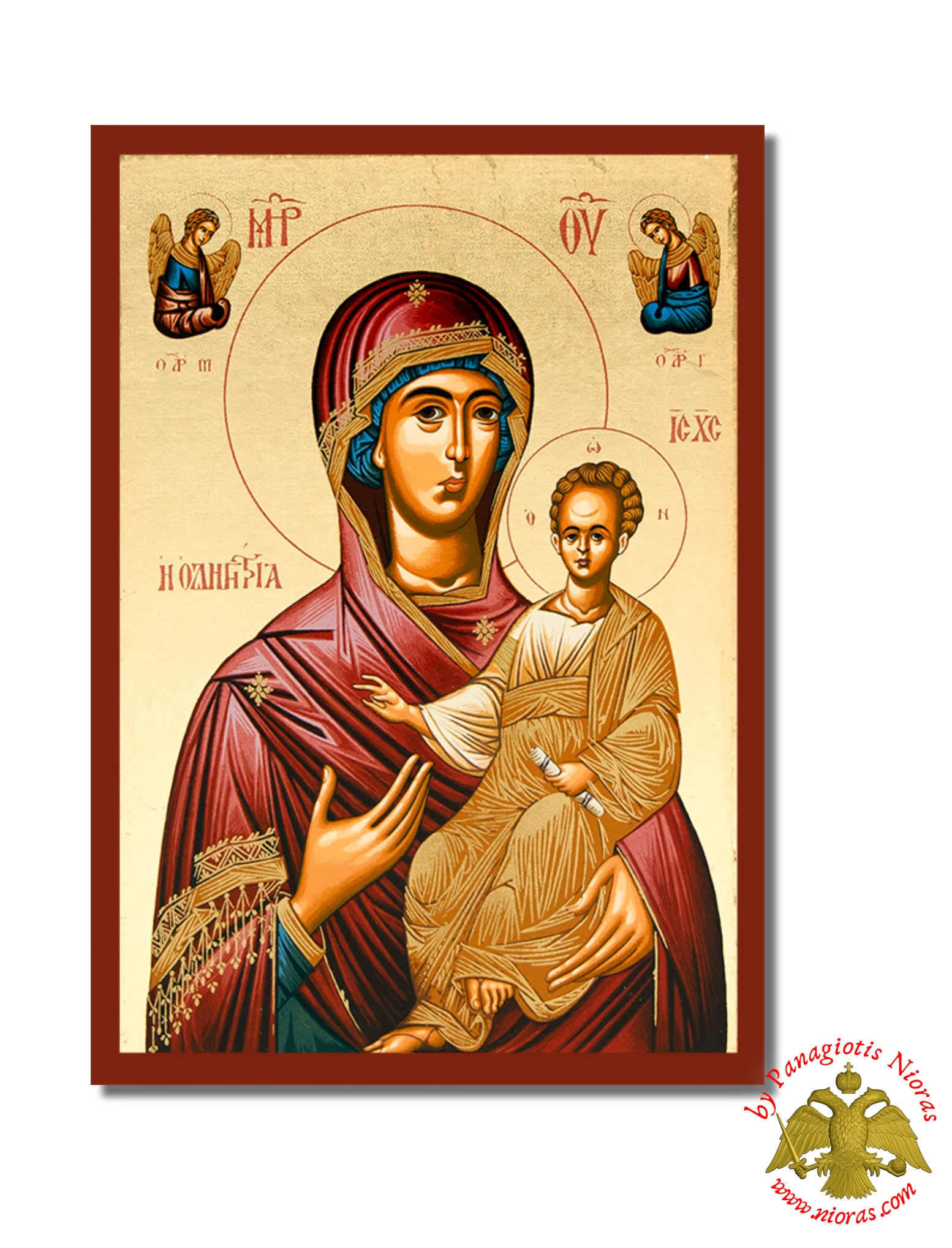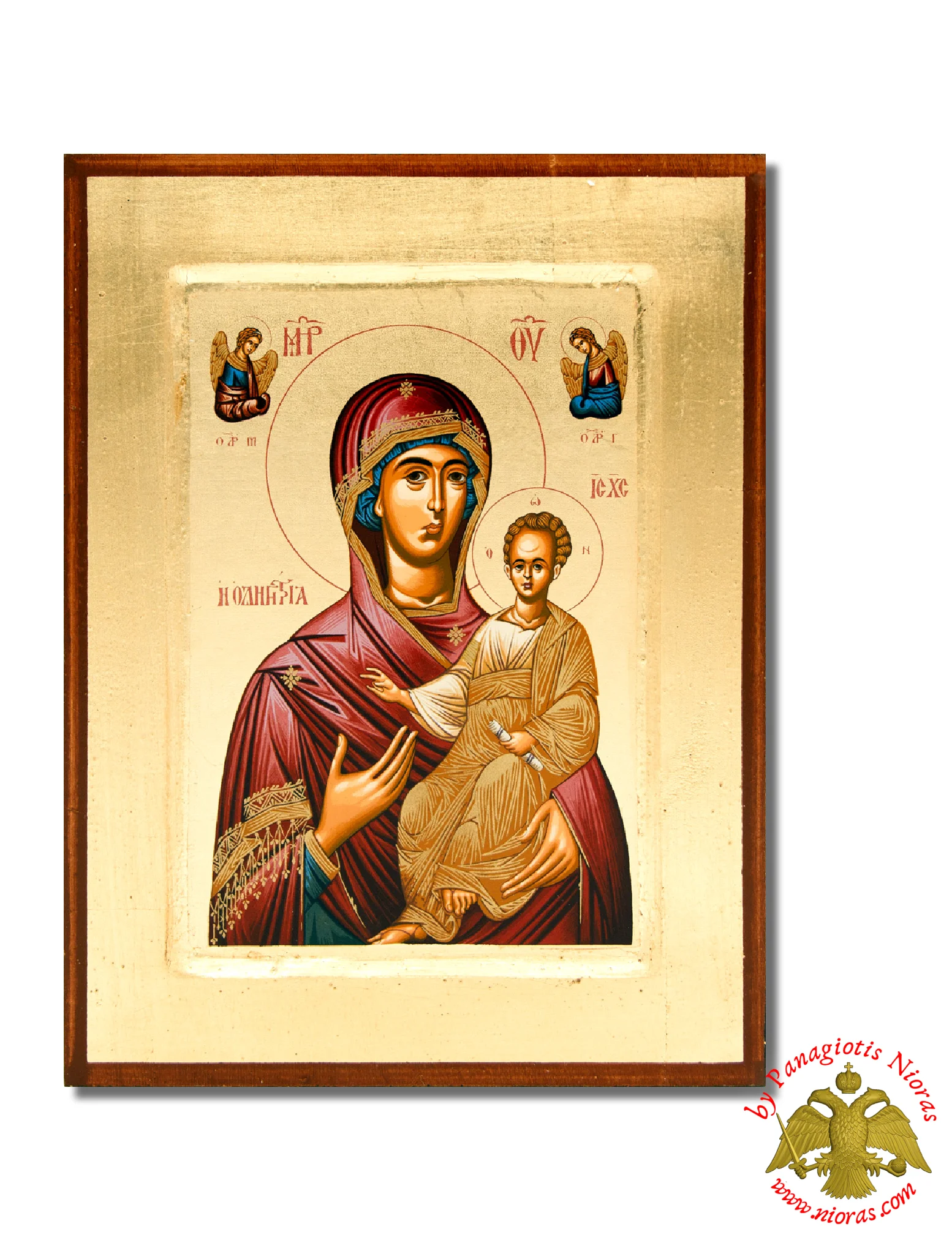 Χειροποίητη Ξύλινη Εικόνα Η Παναγιά Οδηγήτρια Σε Καμβά.