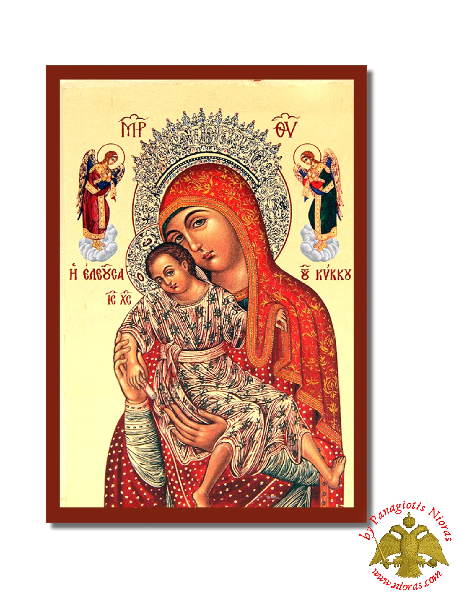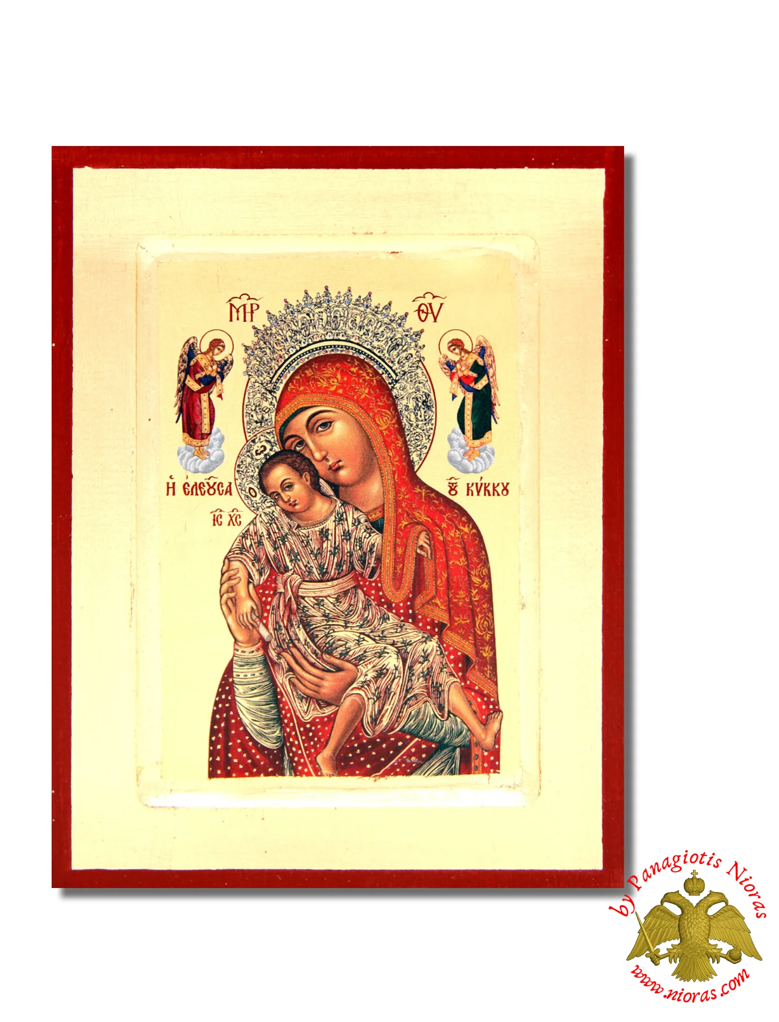 Χειροποίητη Ξύλινη Εικόνα Η Παναγιά Κυκκώτισσα Σε Καμβά.