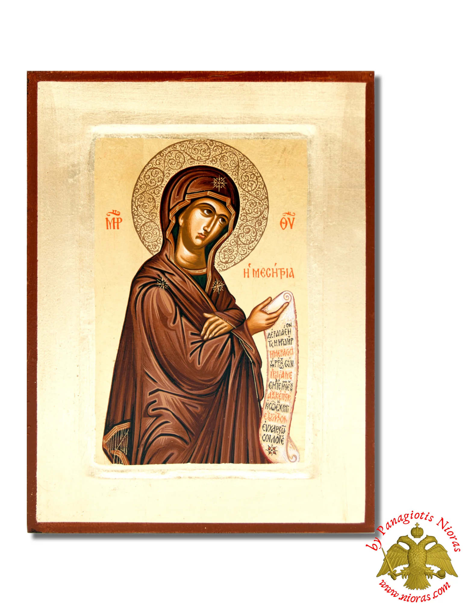Χειροποίητη Ξύλινη Εικόνα Tης Παναγία Η Μεσήτρια Σε Καμβά.