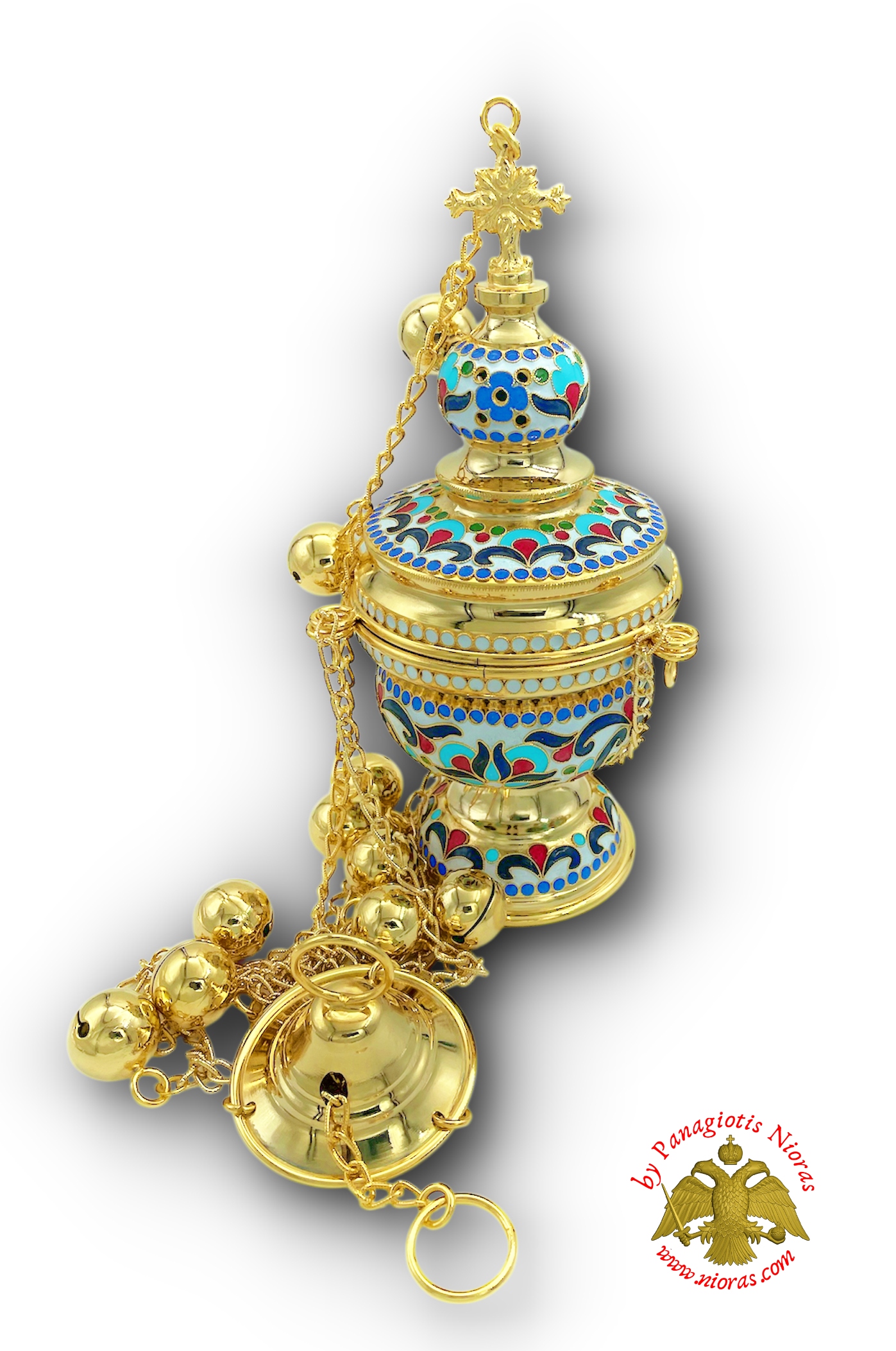 Χειροποίητο εκκλησιαστικό θυμιατό με σμάλτινο μοτίβο.