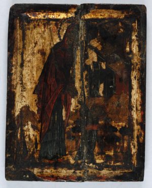Πρόκειται για εικόνα του τέλους του 16ου – α΄ μισού του 17ου αιώνα με θέμα τα πρώτα βήματα του Χριστού. Στο αριστερό μέρος της εικόνας παριστάνεται η Θεοτόκος, υψηλόκορμη και στραμμένη προς τα δεξιά. Έχει τα χέρια απλωμένα προς το Χριστό, ο οποίος παρουσιάζεται ως μικρό παιδί που βηματίζει προς την αγκαλιά της μητέρας Του, απλώνοντας τα χέρια Του προς το μέρος της. Τα χαρακτηριστικά Του παραπέμπουν μάλλον στην ηλικία των δύο ή τριών ετών παρά στην ηλικία κατά την οποία αρχίζουν τα παιδιά να βηματίζουν, κατά τους έξι με οκτώ πρώτους μήνες της ζωής τους.