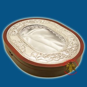 Κατασκευασμένη από ξύλο και διακοσμημένη με επάργυρο μέταλλο στην μπροστά όψη.