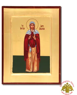 Hand Made Τhe Saint Ariadne Byzantine Wooden Icon on Canvas. Offered into a variation of styles on Flat and Framed Wood Made in Greece from our WorkShop