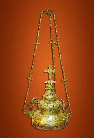Orthodox Filakto Amulet Pendant Blue Heart with Light Yellow Cross Beads