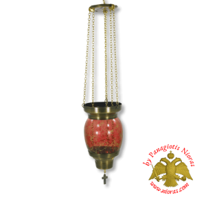 Orthodox Metal Brass Incense Burner 13cm Conical Lid With Orthodox Cross Red Colour