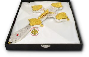 A Blessing Cross hand cross held by a priest or bishop in Eastern Christianity when he gives a benediction.