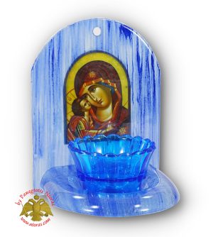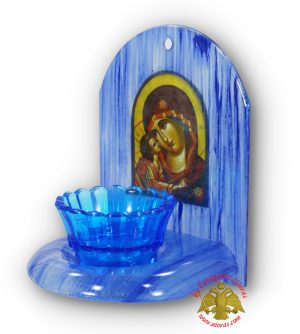 Oil Candle from Hand Blown Colorful Glass With Holy Icon.