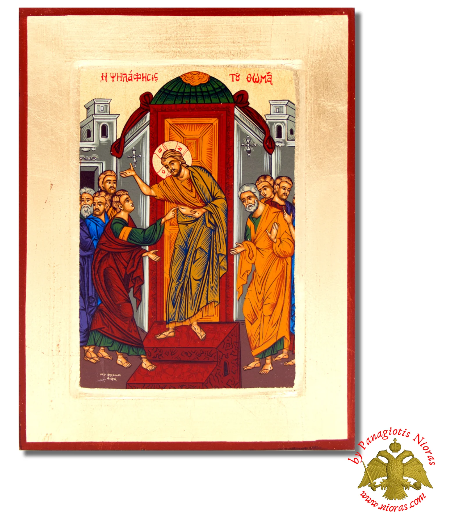 Handmade Wooden Icon Of The Psilafisis Of Thomas On Canvas.