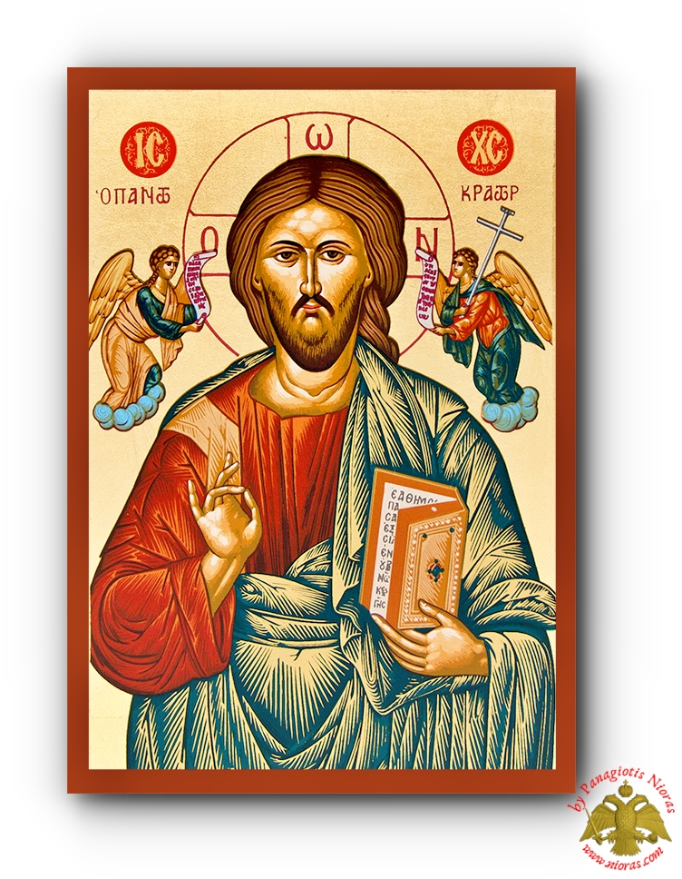Handmade Wooden Icon Of Christ The Pantocrator On Canvas.