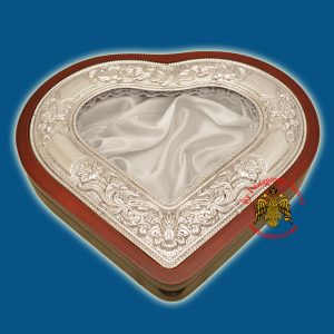 Stefanothiki is made out of wood and decorated with Silver Plated Metal all around the front.