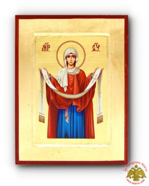 Hand Made Holy Virgin Mary Panagia Byzantine Wooden Icon on Canvas.