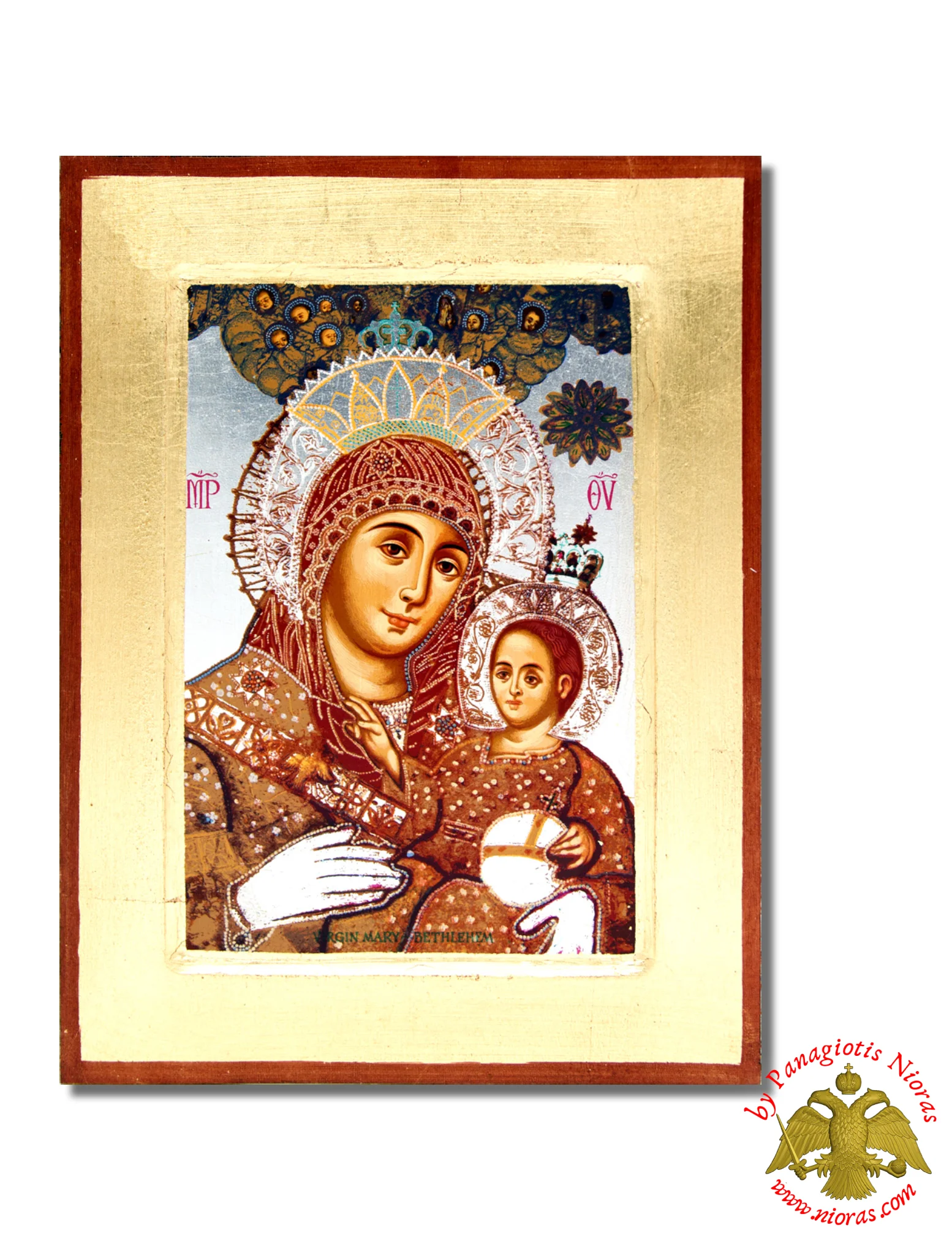 Handmade Wooden Icon Of Panagia Of Bethlehem On Canvas.