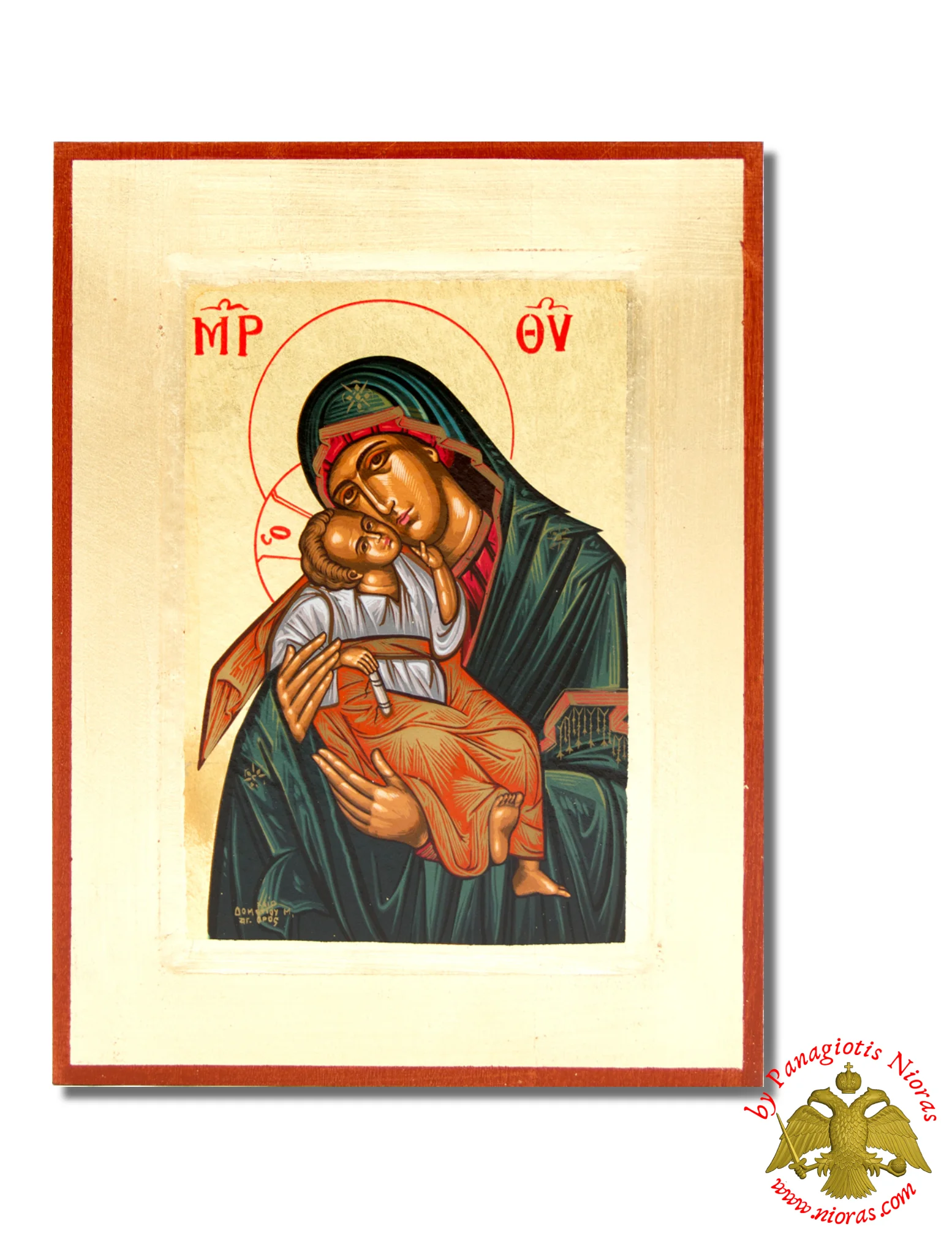 Handmade Wooden Icon Of Panagia Glikofilousa Ntonskagia On Canvas.