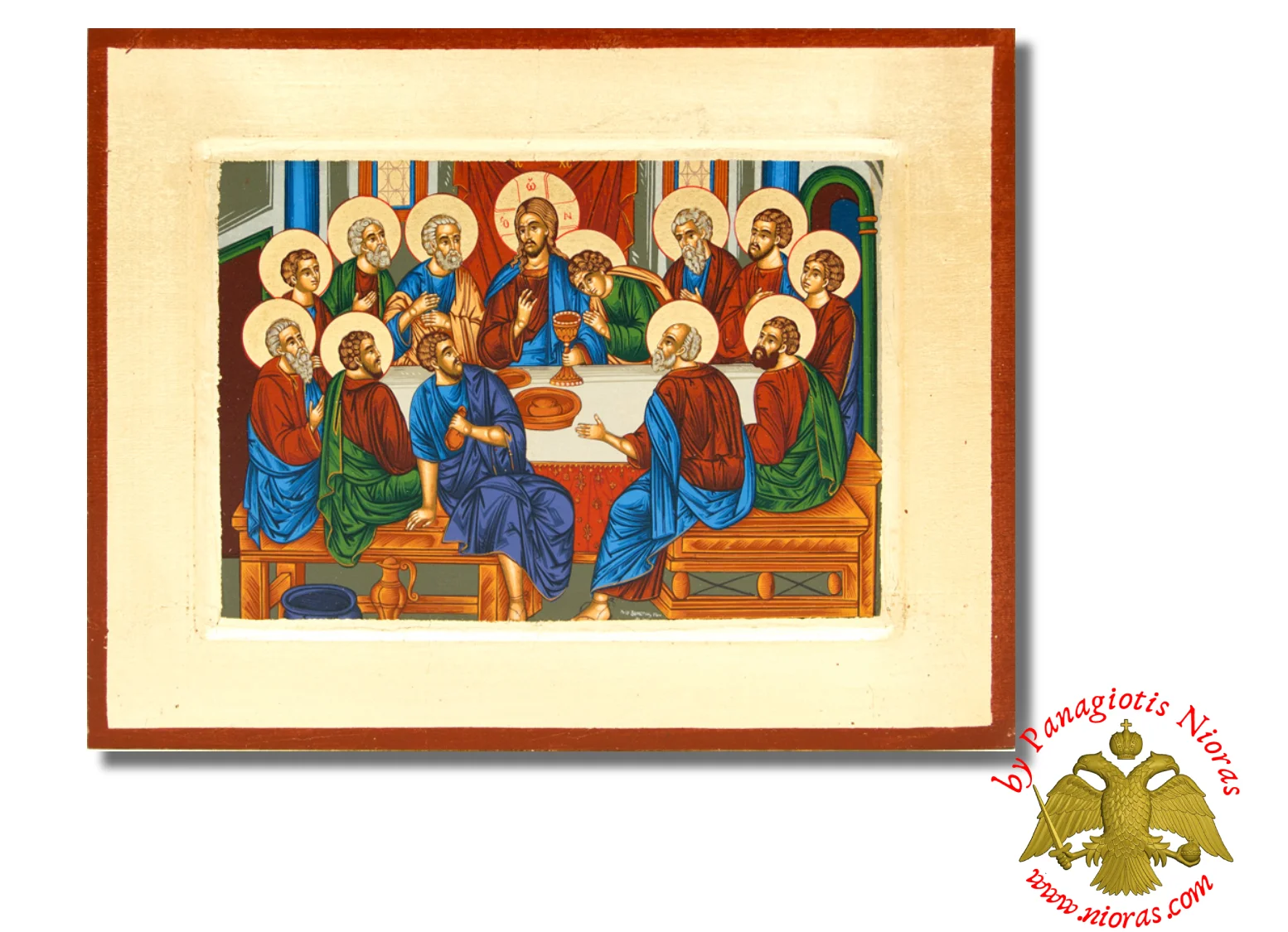 Handmade Wooden Icon Of The Last Supper On Canvas.