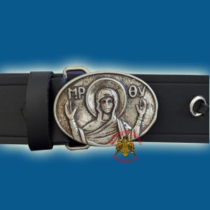 In the Eastern Orthodox tradition at the blessing of a Monk or Nun, a leather belt, made of the skin of a dead animal signifying deadness to the world is fastened about the loins. This girding of the loins also signifies bodily mortification and readiness for the service of Christ and His return (Luke 12:35-37). The buckle of the belt has the symbols of the Crucifixion on it to remind the new monk of his daily Crucifixion. The follow words are spoken by the Abbot: “Our brother is gird about his loins with the power of truth, for mortification of body and renewal of spirit, and for courage and caution.”