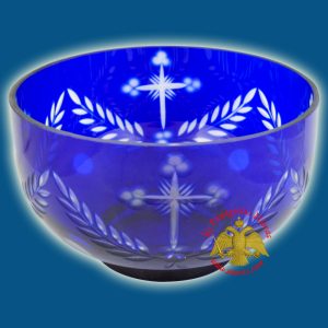 Orthodox Holy Water Bowl with Hand Carved Cross Glass