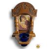Hand Made Icon with Glass Oil Cup, in Natural Wood,
