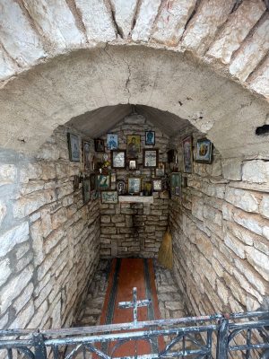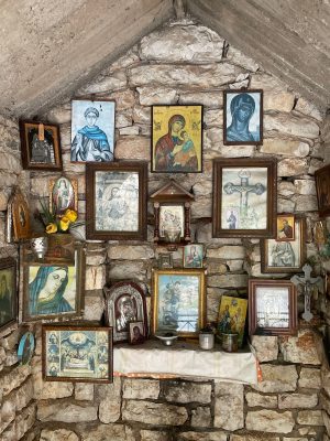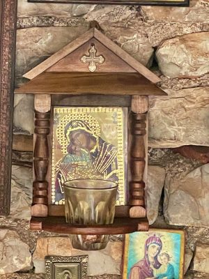 Hand Made Icon with Glass Oil Cup, in Natural Wood,