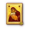 Hand Made Icon with Glass Oil Cup, in Natural Wood, with the Image of Theotokos.