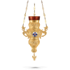 Hand Made,Byzantine, Ecclesiastical Hanging Oil Candle, Gold plated with Stone. A unique creation from our craftsmen.