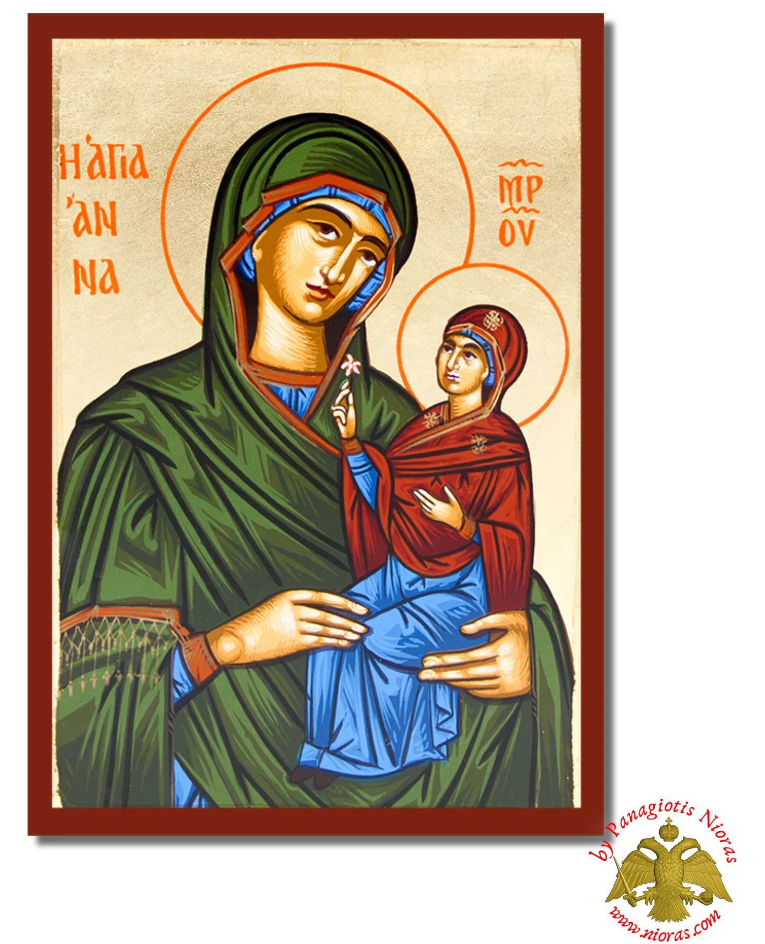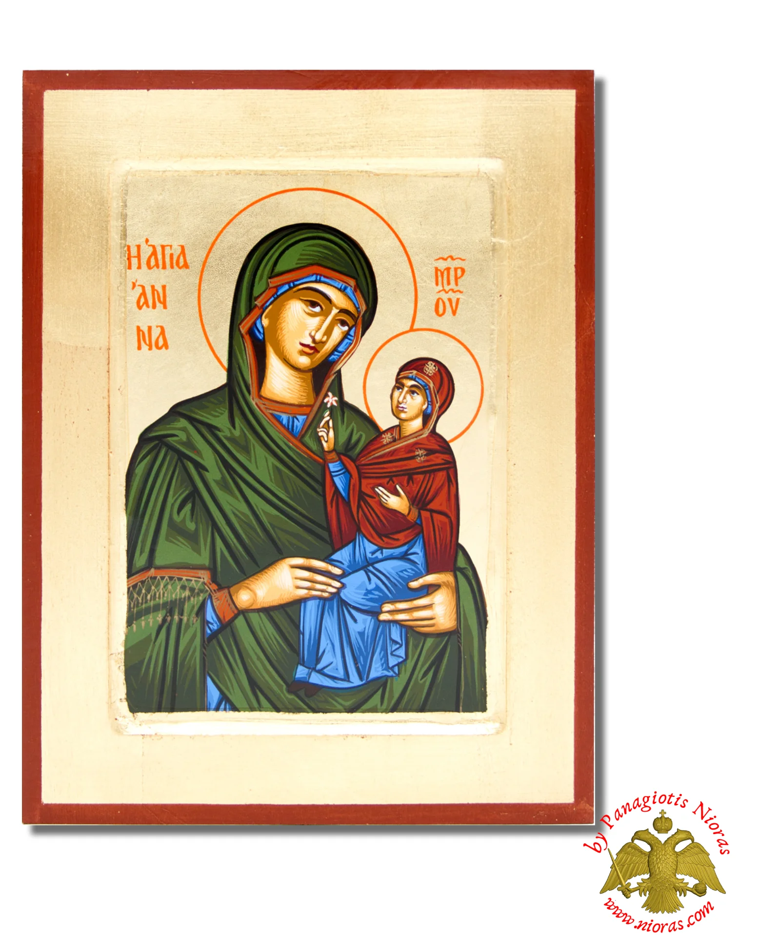 Handmade Wooden Icon Of Saint Anne On Canvas.