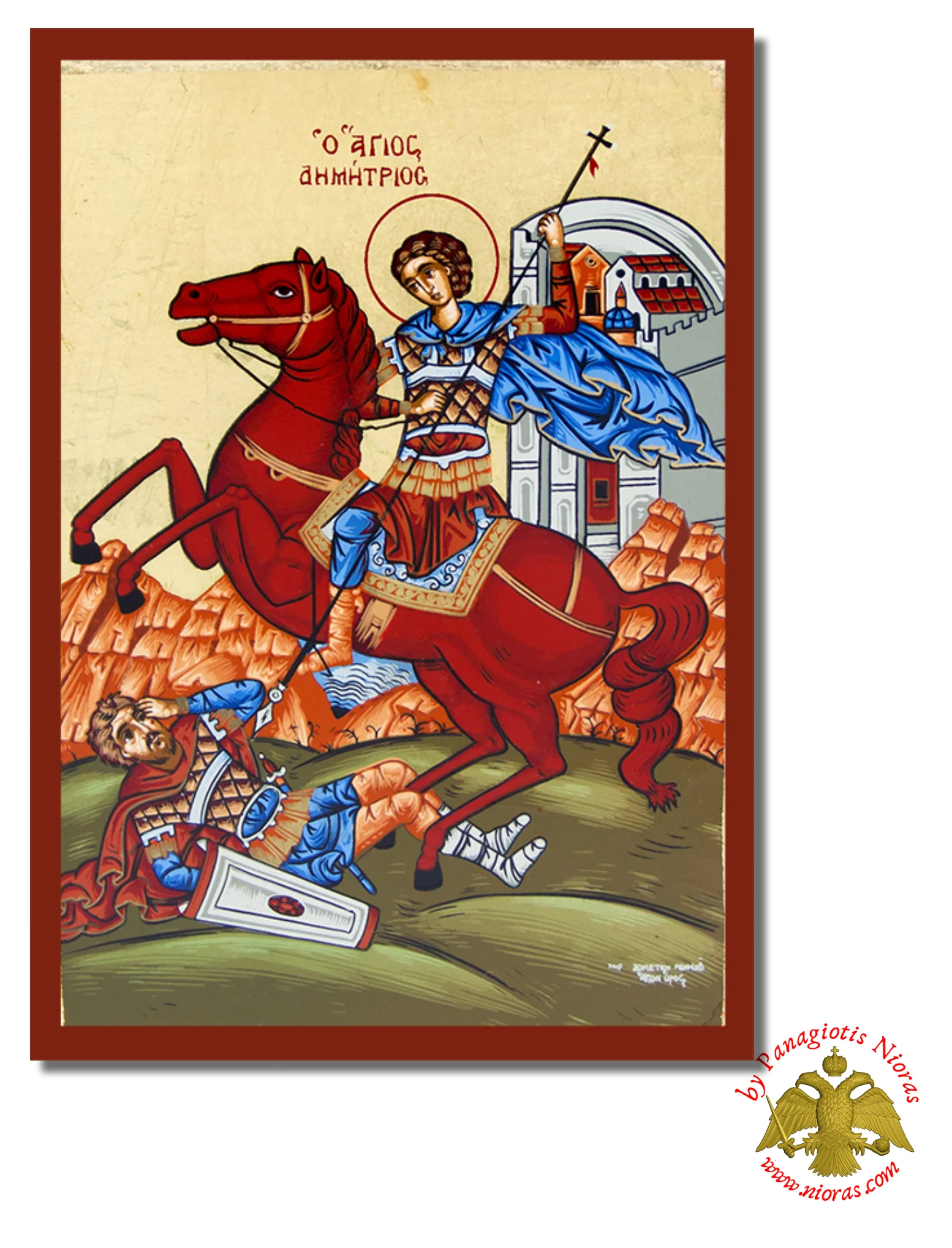 Saint Demetrius was a Thessalonian, a most pious son of pious and noble parents, and a teacher of the Faith of Christ. When Maximian first came to Thcssalonica in 190, he raised the Saint to the rank of Duke of Thessaly. But when it was discovered that the Saint was a Christian, he was arrested and kept bound in a bath-house. While the games were under way in the city, Maximian was a spectator there. A certain friend of his, a barbarian who was a notable wrestler, Lyaeus by time, waxing haughty because of the height and strength of his body, boasted in the stadium and challenged the citizens to a contest with him. All that fought with him were defeated.