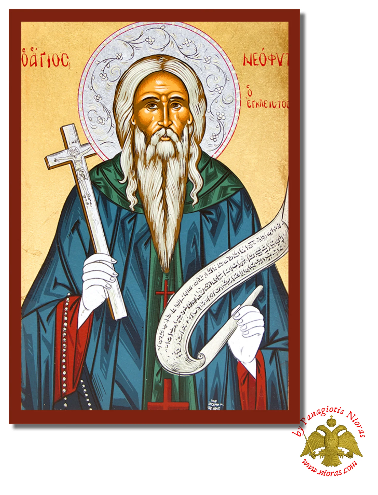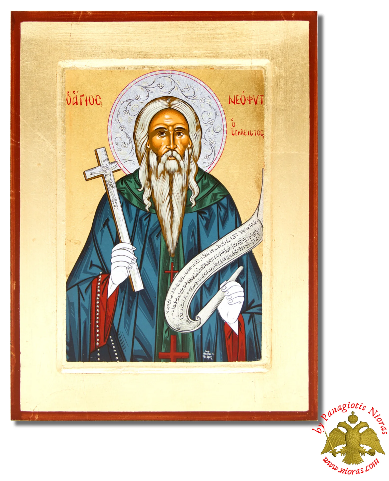 Handmade Wooden Icon Of Saint Neophytos On Canvas.