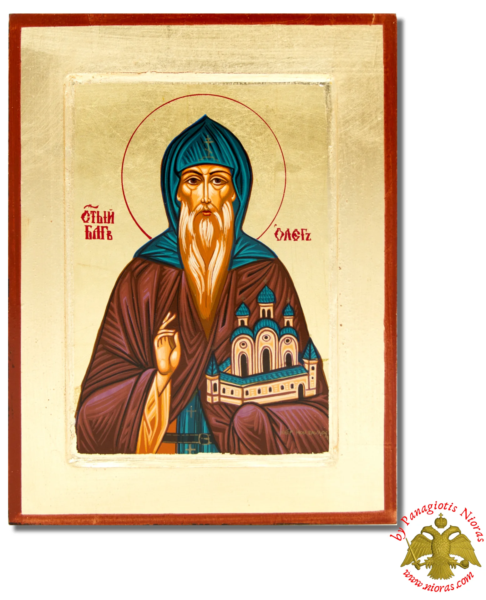Handmade Wooden Icon Of Saint Oleg On Canvas.