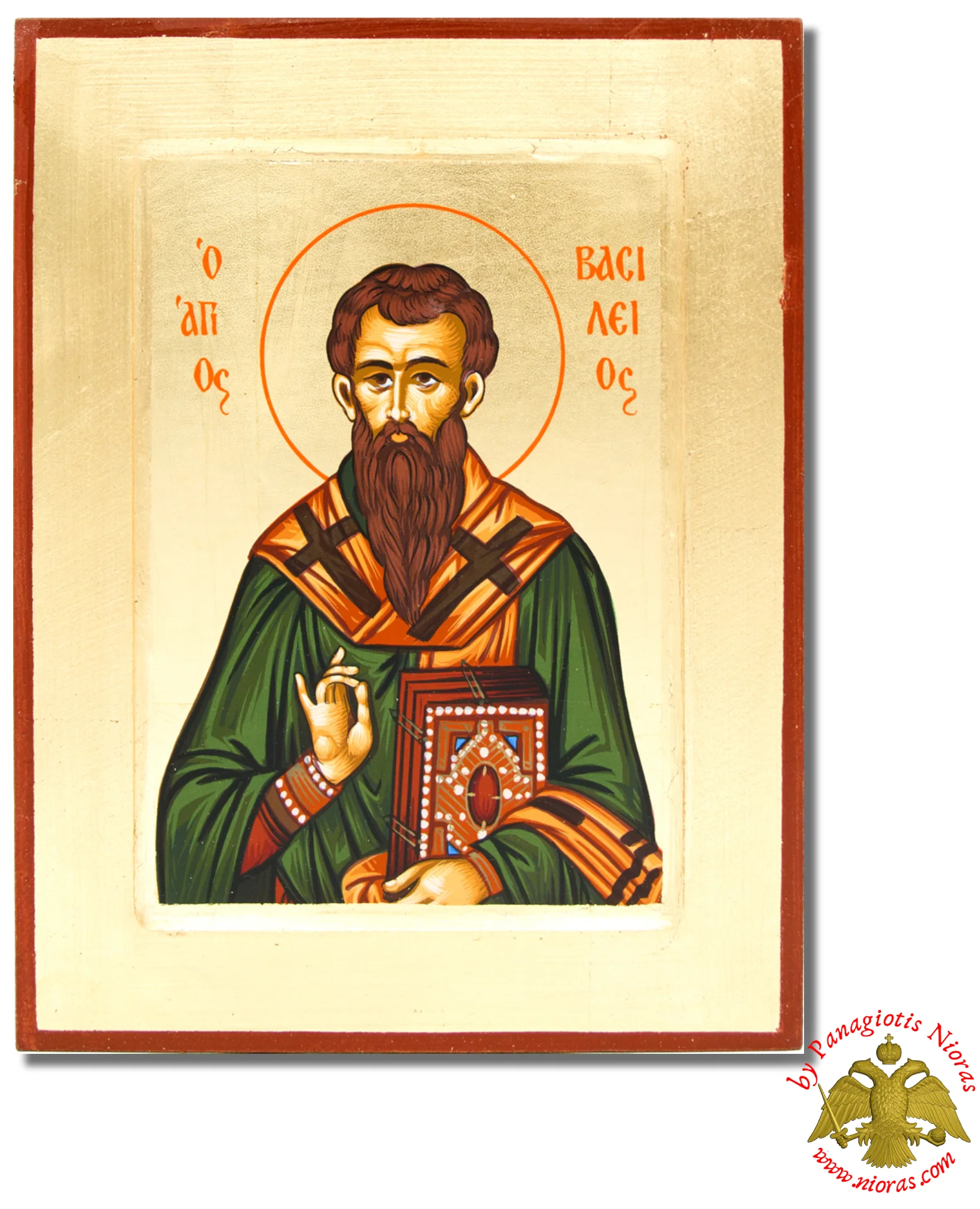 Handmade Wooden Icon Of Saint Vasileios On Canvas.