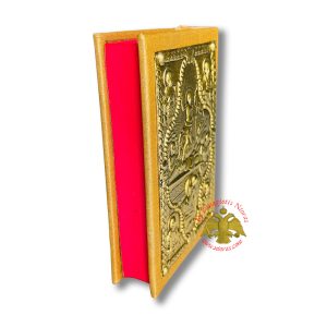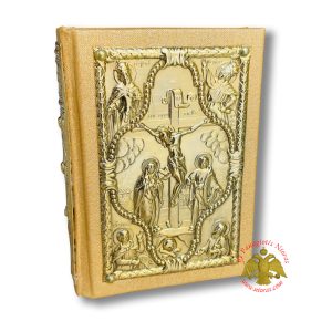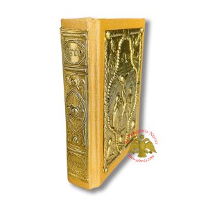 Hand Made Gold Plated Holy Gospel with the Crucifixion in the front and the Resurrection on the back side.