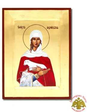 Hand Made The Saint Agni Byzantine Wooden Icon on Canvas.