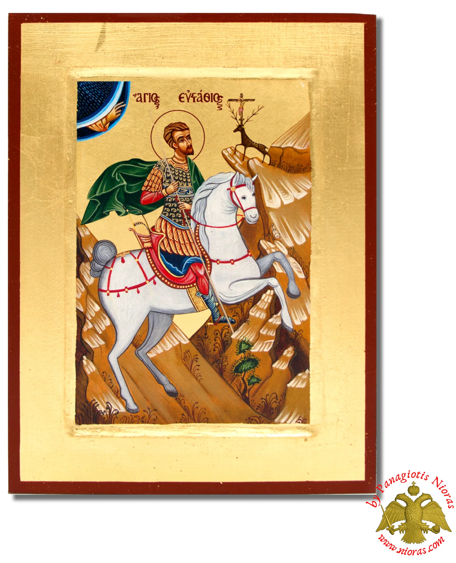 Hand Made The Saint Eustathius Byzantine Wooden Icon on Canvas.