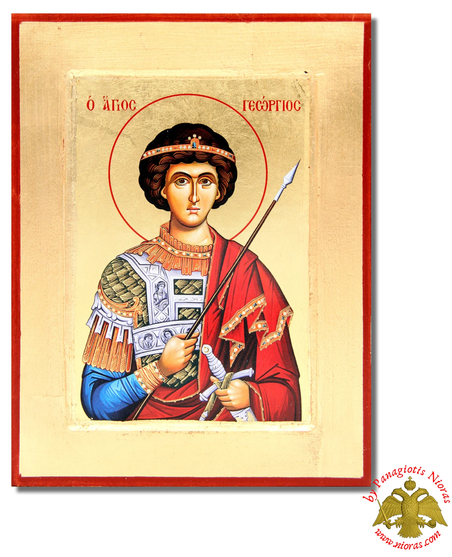 Hand Made The saint George Byzantine Wooden Icon on Canvas.