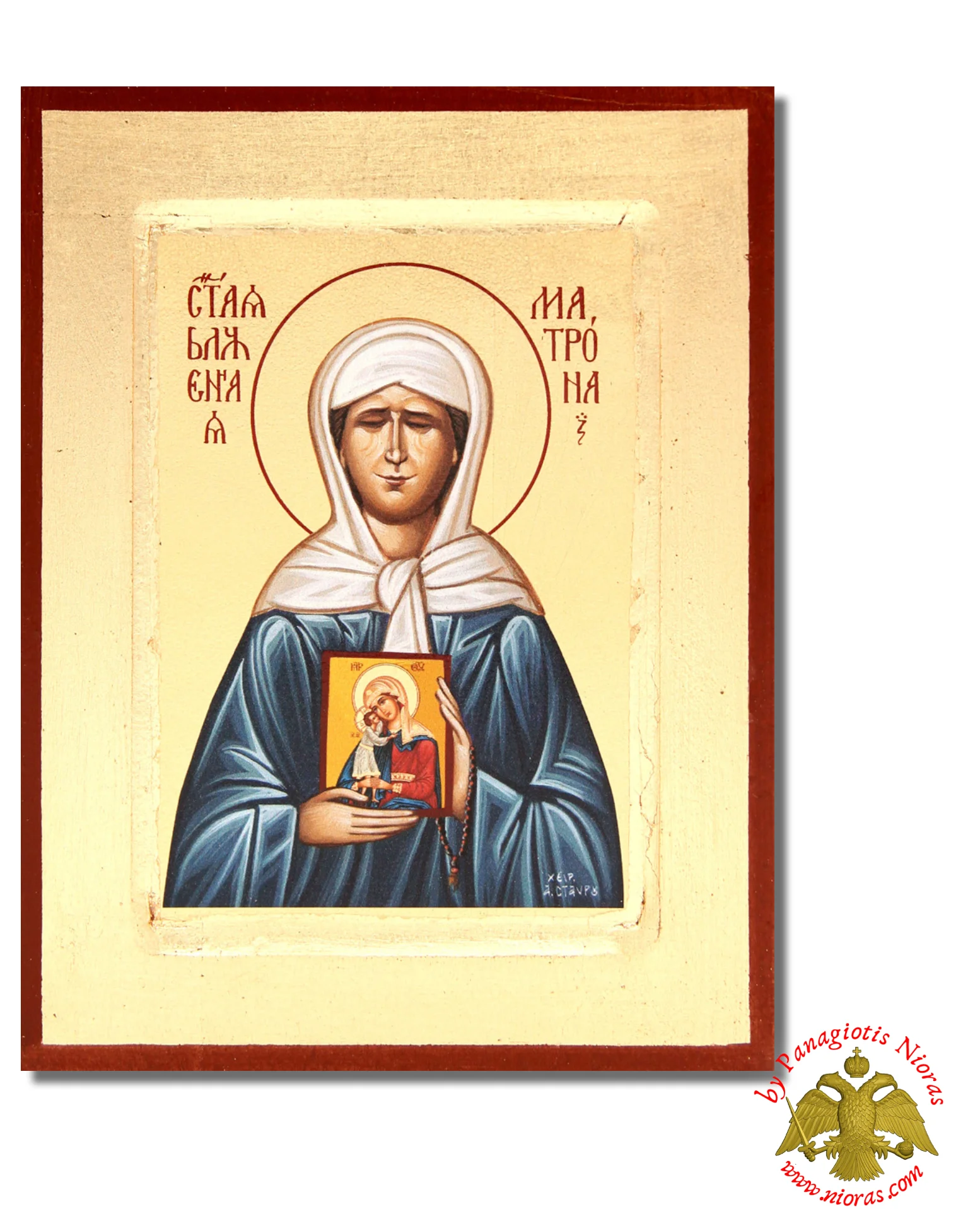 Hand Made The Saint Matron Byzantine Wooden Icon on Canvas.