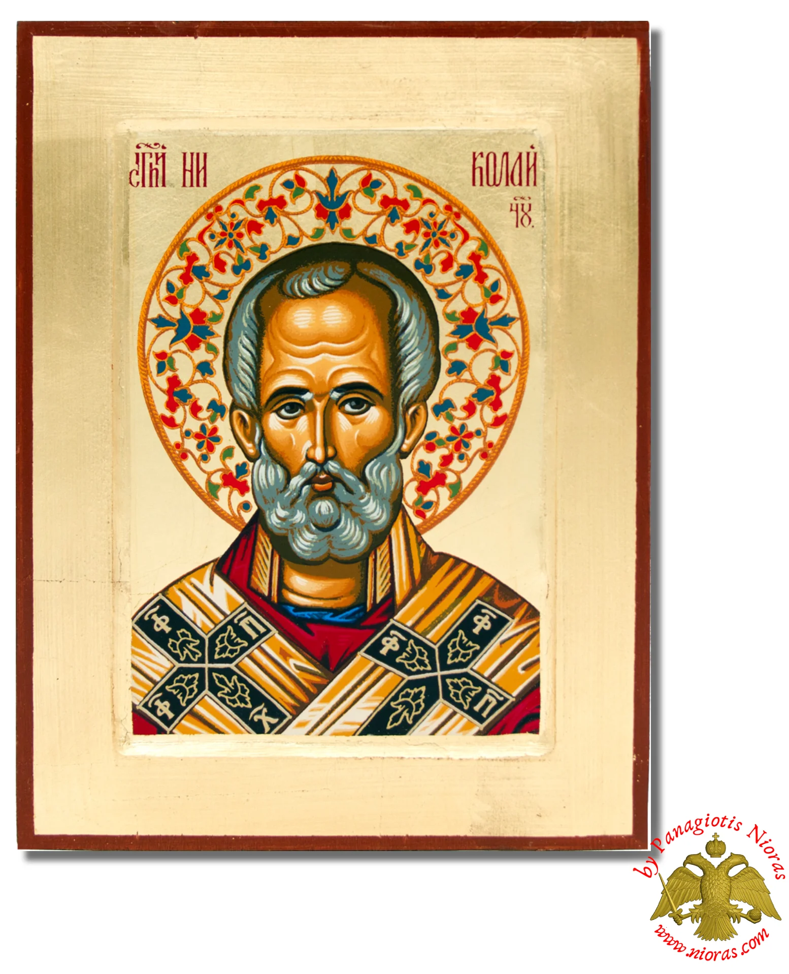 Hand Made Τhe Saint Nicholas Byzantine Wooden Icon on Canvas.