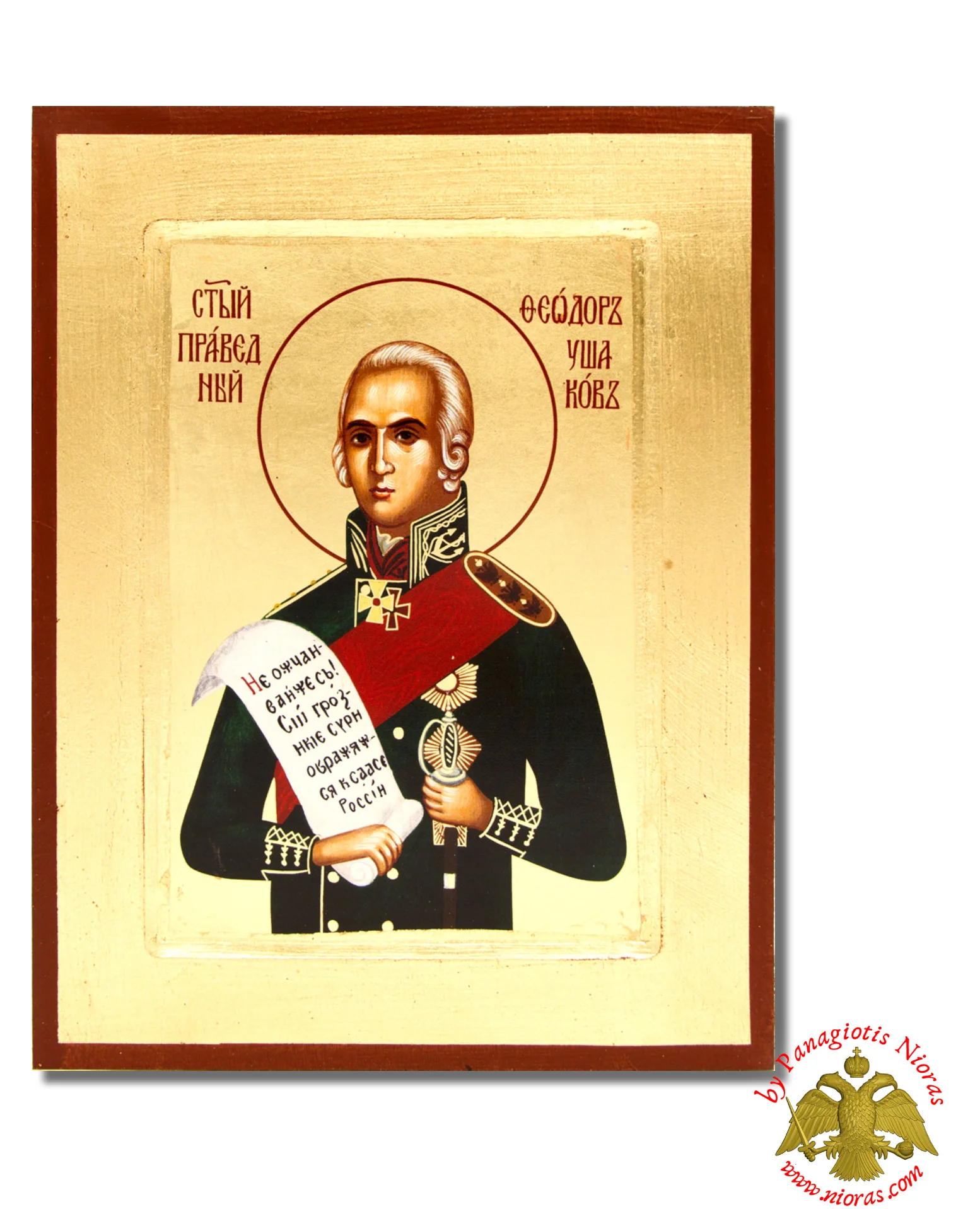 Hand Made The Saint Theodore Usakov Byzantine Wooden Icon on Canvas.