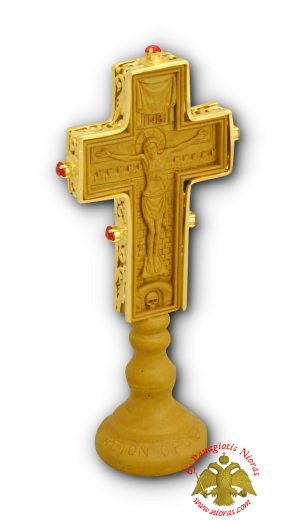 Orthodox Wooden Cross with Base with the Representations of the Baptism and Crucifixion in each side of the Cross.